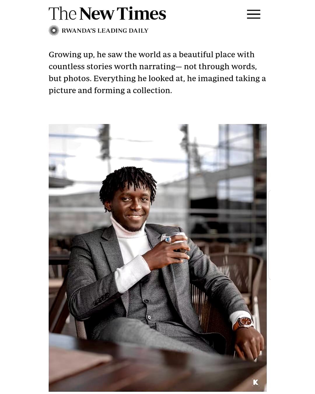 3月4日,卢旺达当地新时代网站(The Newtimes)以《镜头后,我用摄影捕捉世界》(Behind the lens, Capturing the world through photography)为题报道了LOUIS DE GONZAGUE KUBWIMANA(刘雨)执着理想的摄影故事。记录...