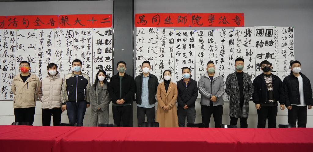 为贯彻落实党的二十大精神和中共中央决策部署,书法学院于11月16日在6号教学楼505室举行师生同书“党的二十大金句”活动。书法学院党总支副书记、副院长李金梅,书法学院副院长李会芳,学院教师代表、学生代表等40余人参与。“中国共产党的中心任务就是团结带领全国各族人民全面建成社会主义现代化强国、实现第二个百年奋斗目标,以中国式现代化全面推进中华民族伟大复兴”“团结奋斗...