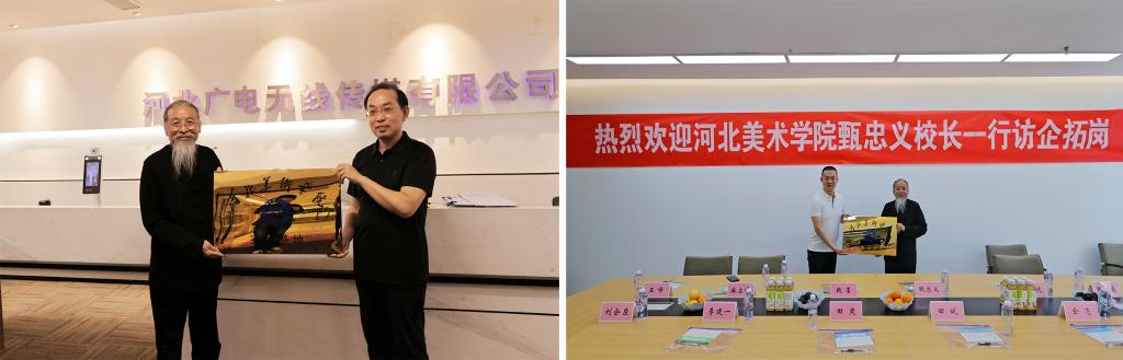 甄忠义为河北广电无线传媒有限公司、河北快乐萌宝教育科技有限公司授牌。影视艺术学院将继续开展“访企拓岗”活动,拓展更多优质的就业渠道与岗位,同时多方面了解企业的需求、学生的就业意向等。充分发挥好校领导班子的示范带头作用,带领全校教职工全面推动毕业生就业工作,为毕业生高质量就业做好全面的后勤保障。