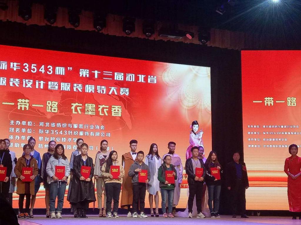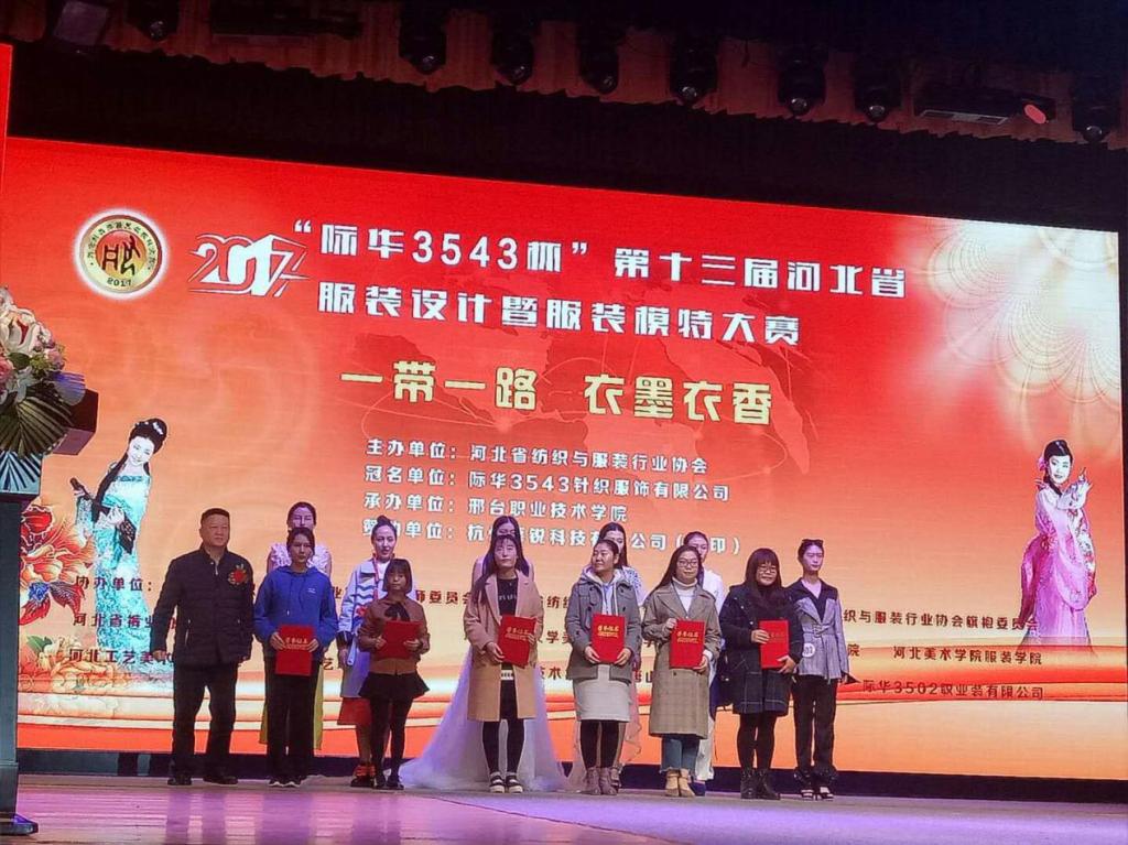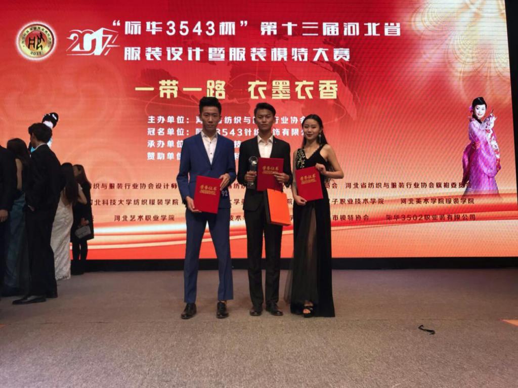 2017年10月27日-10月29日,以“一带一路,衣墨衣香”为主题的“际华3543杯”第十三届河北省服装设计暨服装模特大赛在河北省邢台市邢台职业技术学院顺利展开。beat36532名师生参赛,其中参加服装设计比赛20人,服装模特比赛12人。经过三天初赛和复赛的激烈角逐,beat365服装设计组获效果图二等奖2名、服装设计三等奖2名、最具市场潜力奖2名、最佳服饰搭配奖1名、最佳造型奖1名、优秀奖8名,服装模特组荣获亚军1名、最佳T台表现奖1名、最佳模特潜质奖1名、优秀奖3名。