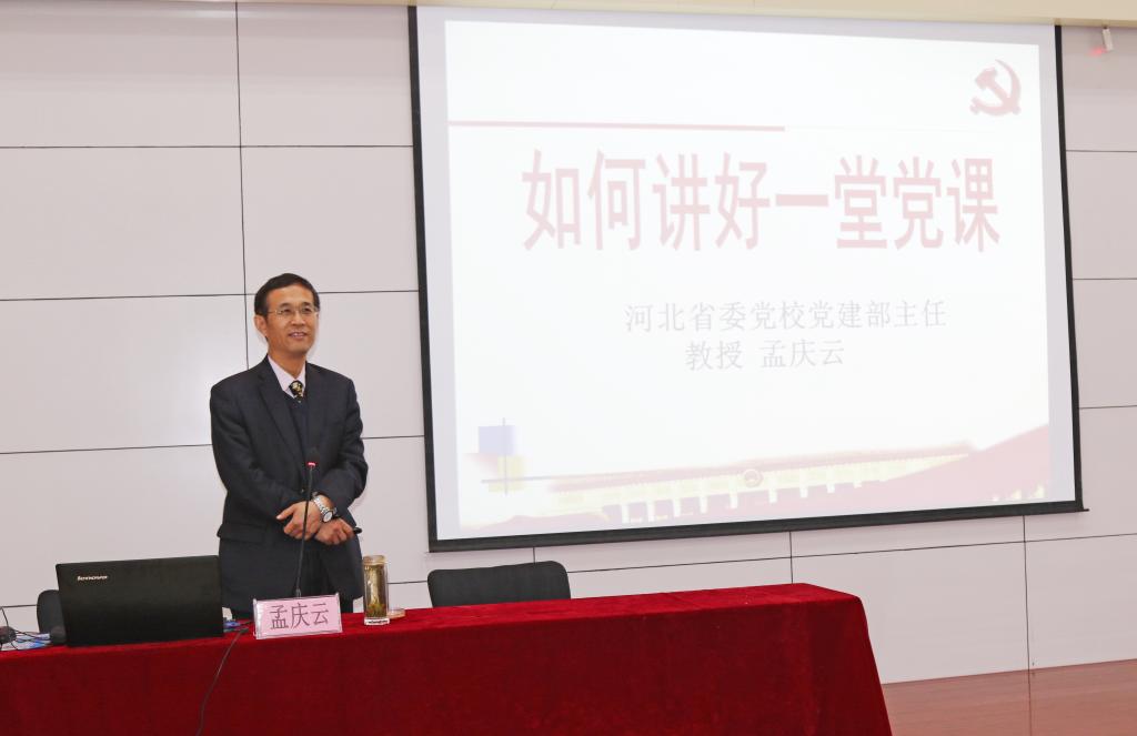 11月17日下午,校党委邀请河北省委党校党建教研部主任教授孟庆云为beat365党委委员、各党总支委员开展“如何讲好党课”专题培训。党委副书记、副校长王志民,纪委书记、副校长甄心恒,党委委员、副校长孙志强,党委其他成员,各党总支委员参加此次培训。培训会由党办主任郭珊主持。