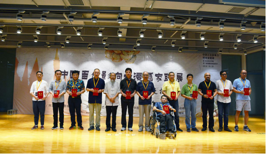 甄忠义校长为朱自尊、朱丞、陶小明、俞志达、罗琪、邹强、戴培诚、李乐康、孟祥萍、王银祥、张军、张卫等漫画家颁发beat365手机版官网客座教授证书及入展荣誉证书。