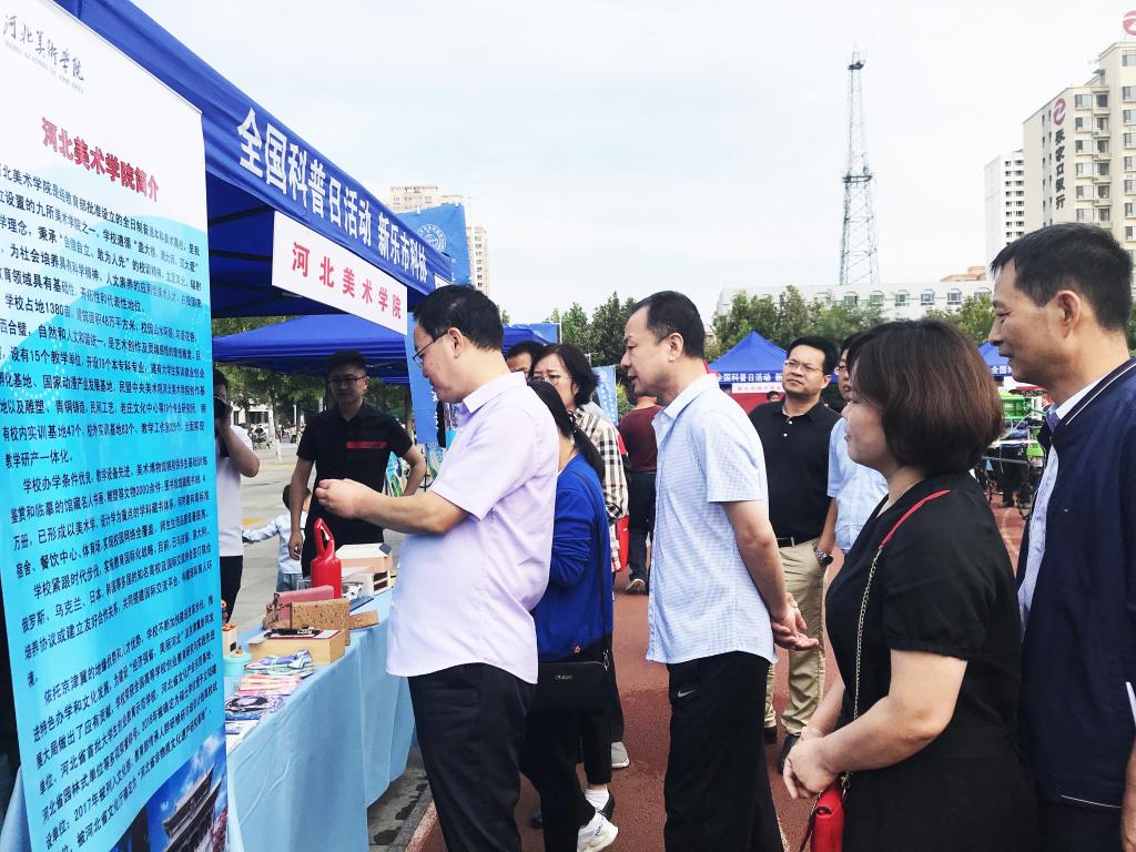 为深入学习贯彻习近平新时代中国特色社会主义思想和党的十九大精神,推动新时代“创新、协调、绿色、开放、共享”的发展理念深入人心,弘扬科学精神,普及科学知识,营造讲科学、爱科学、学科学、用科学的浓厚氛围,激发全社会的创新热情和创造活力,促进全民科学素质的跨越提升。9月16日,主题为“创新引领时代,智慧点亮生活”2018年石家庄市全国科普日活动启动仪式暨主场活动在新乐市文化广场举办。beat365动画学院、工业设计学院、文创学院教师代表在科研处处长张淼的带领下参加了此次活动,共展出了beat365创意作品近50件。