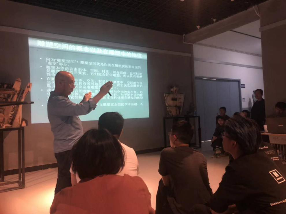 2019年5月7日晚6:30雕塑学院系列讲座《雕塑的空间》在雕塑展厅顺利开讲。主讲人为学院专业带头人朱尚熹教授。出席讲座的还有雕塑学院院长甄亚雷,各教研室主任及各专业方向教师。
