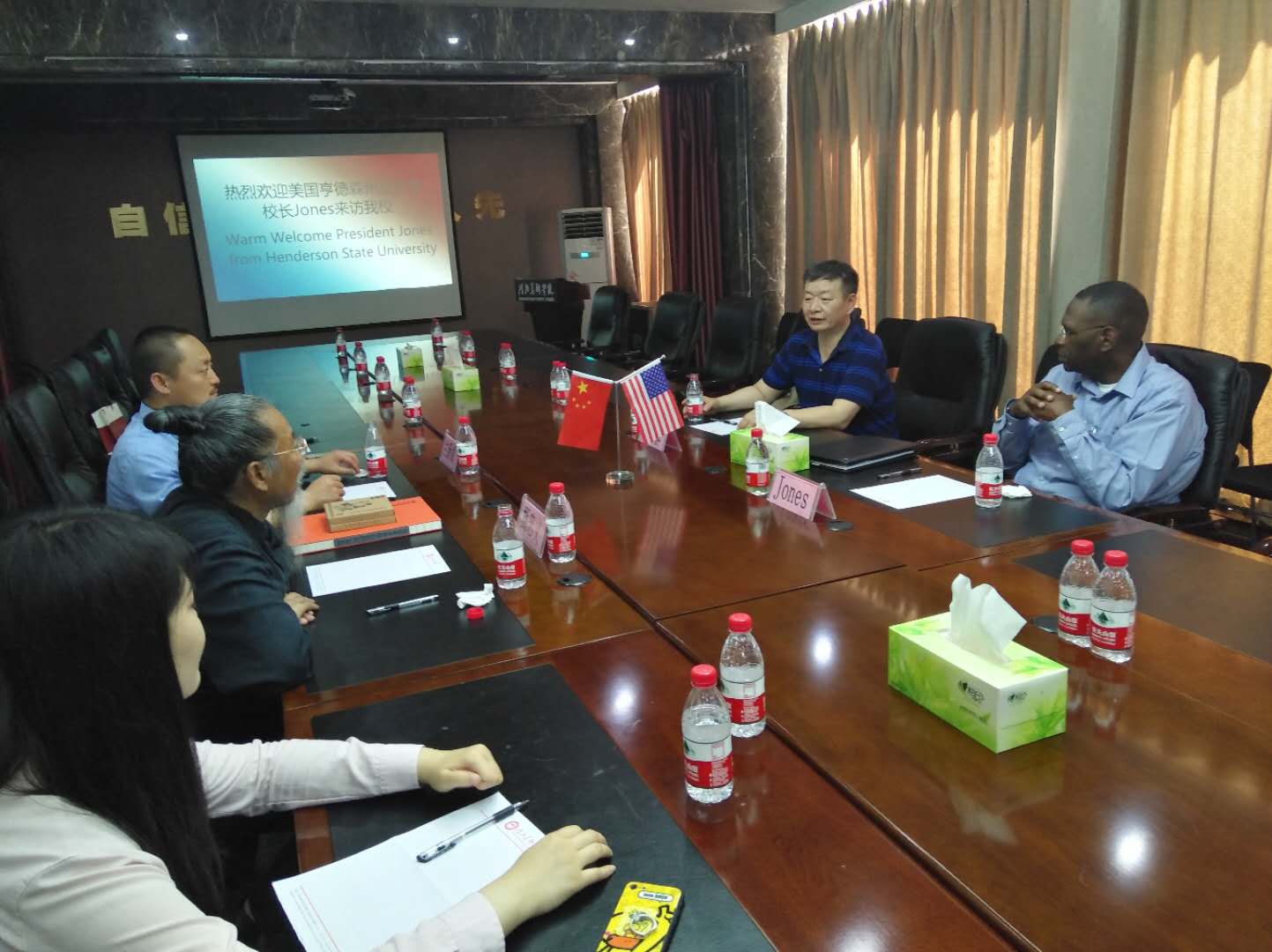 Jones校长此次访问是继2018年10月22日,鲍威尔副校长代表美国亨德森州立大学与beat365正式签署“中美人才培养计划”协议和beat365获批《中美人才培养计划》121双学位项目实验班的基础上,为进一步加强两校的合作,确保项目的顺利推进,能更好的为学生服务。