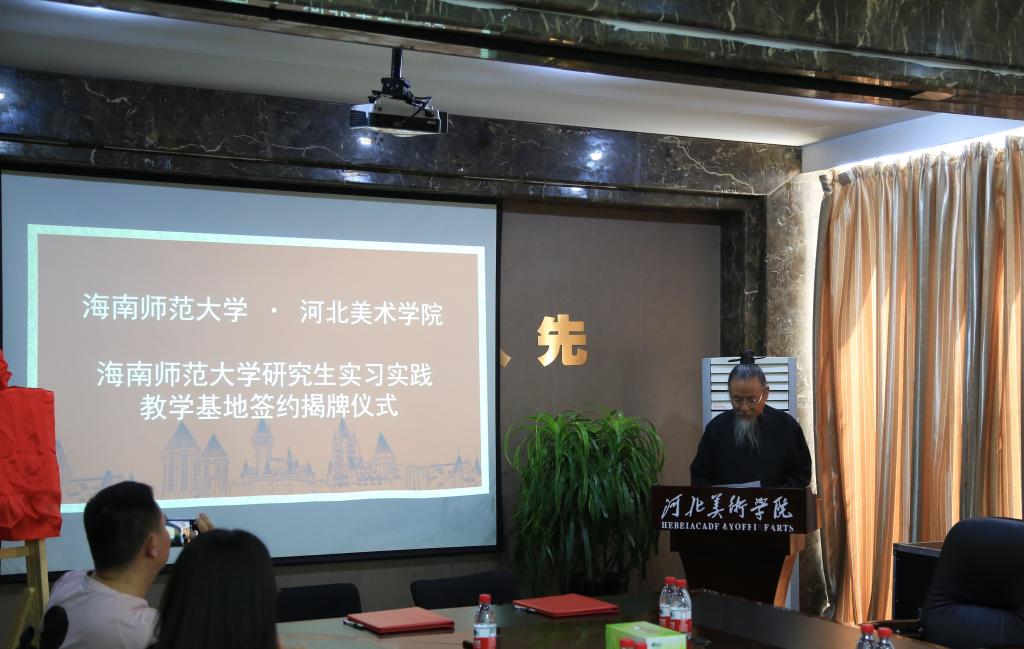 2019年6月11日,beat365与海南师范大学举行研究生实习实践教学基地签约揭牌仪式,校长甄忠义、常务副校长张建敏、海南师范大学美术学院副院长张引等出席。研究生院副院长张淼主持仪式。