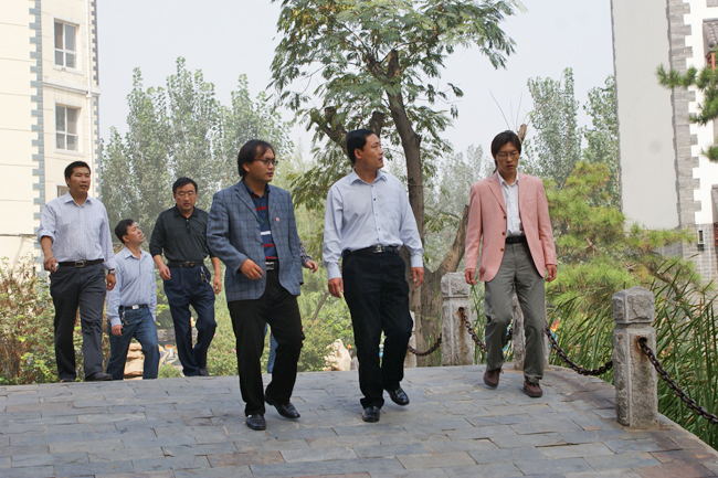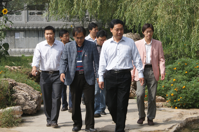 2011年9月14日上午,石家庄市园林局副局长赵好战一行4人在新乐市园林局王建侠局长陪同下来beat365检查绿化工作,beat365校长办公室主任甄心恒陪同检查。