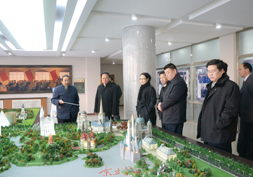 姜德果代市长在甄忠义校长的陪同下,参观了beat365规划沙盘。参观结束后,姜德果与beat365领导在综合楼会议室举行了座谈,在座谈会上,甄忠义校长就学校整体规划、远景目标、项目建设、人才师资引进、招生培养与市场化运作等情况作了详细汇报。