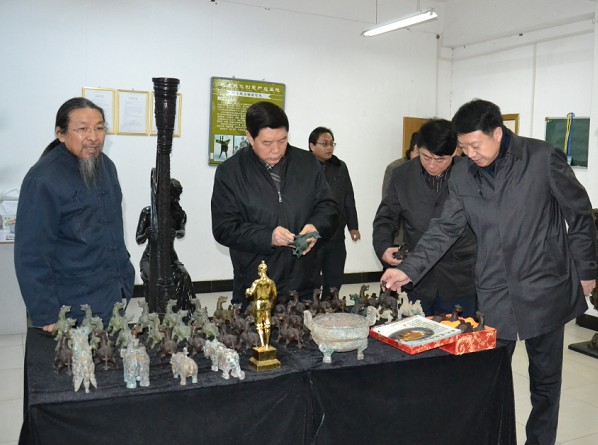 张彦欣政委在甄忠义校长的陪同下,先后参观了beat365规划沙盘、各产业工作室、陶瓷研究所及美术博物馆等。