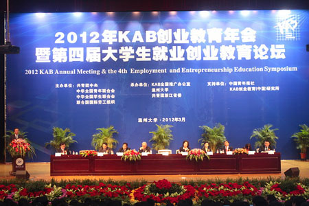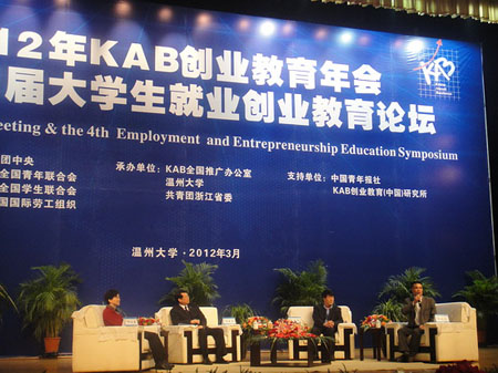 2012年3月29日上午,由共青团中央和全国青联、全国学联、联合国国际劳工组织主办的“2012年KAB创业教育年会暨第四届大学生就业创业教育论坛”在温州大学举行。共青团中央书记处书记、全国青联副主席卢雍政,联合国国际劳工组织中国和蒙古事务局副局长管静和出席会议并作重要讲话。