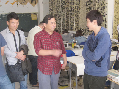 随后几天,曾翔先生对大三学生悬挂在教室的作品进行了逐一点评,并给予了高度评价;然后与学生互动,特别是对学生提出的流行书风问题作了精彩的回答,他把流行书风总结为十六个字:植根传统、立足当代、张扬个性、领引时风。最后,讲座在同学中的热烈掌声中结束!