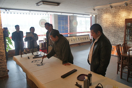 甄忠义校长、张建敏副校长参观厦门国际油画村,并为其题字