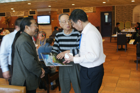 甄忠义校长(中)、张建敏副校长(右)与李振刚教授(左)