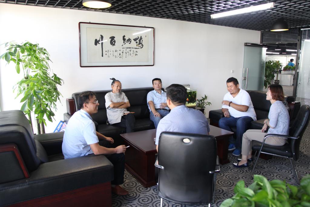 考察组实地考察了河北索拓网络科技有限公司工作环境,了解公司游戏的研发过程,并与企业员工进行了沟通交流。甄校长与公司创始人张江周先生进行座谈,深入了解企业用人需求。
