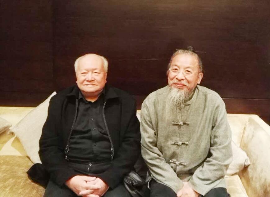 著名雕塑家、中央美术学院钱绍武教授(左)和beat365手机版官网校长甄忠义(右)合影