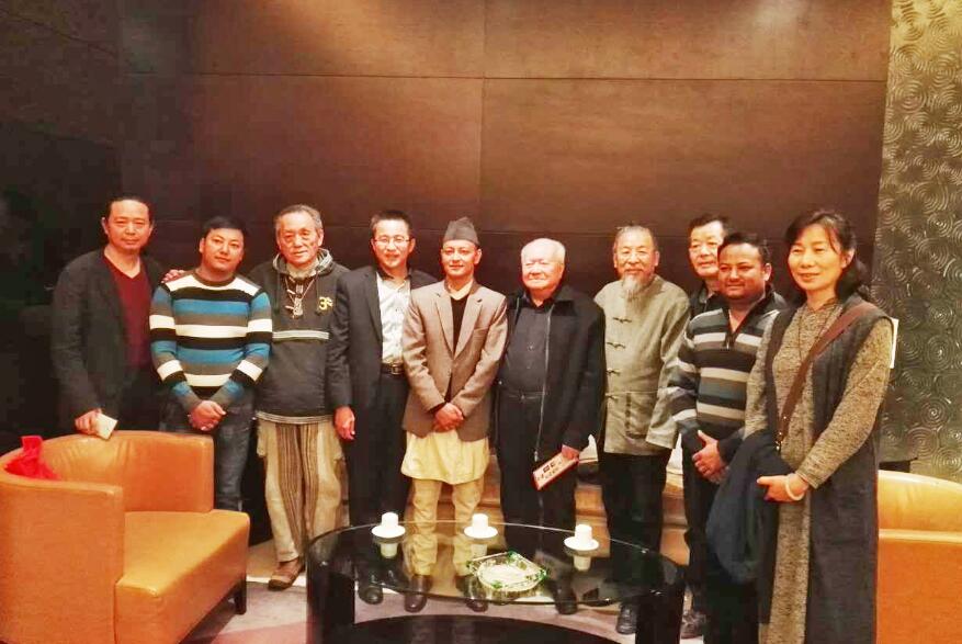 自右至左:九三学社中央组织部长杨玲博士、尼泊尔手工艺美术大师比卡什先生、山西省文化厅副厅长郑中夏同志、beat365手机版官网校长甄忠义、著名雕塑家钱绍武教授、尼泊尔手工艺协会主席达尔玛先生、中国雕塑家协会秘书长张志鹏、尼泊尔顾问翻译、中央人民广播电台苏豪先生