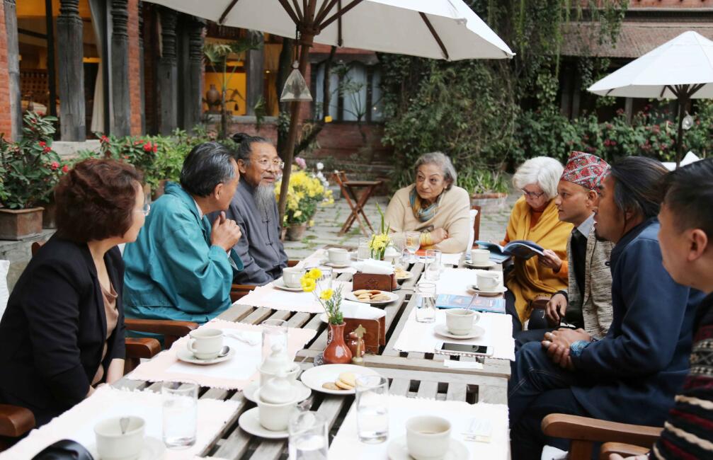 期间,考察团与蓝毗尼管委会主任达芒·阿吉特、中华寺监院释中勇、法门寺主持进行了座谈;拜访了世界著名的尼泊尔七星级杜瓦里咖酒店主人安比佳女士;考察帕坦当地铜雕、石雕、木雕名匠厂区,与帕坦工业园区管委会主任座谈,达成合作意向。