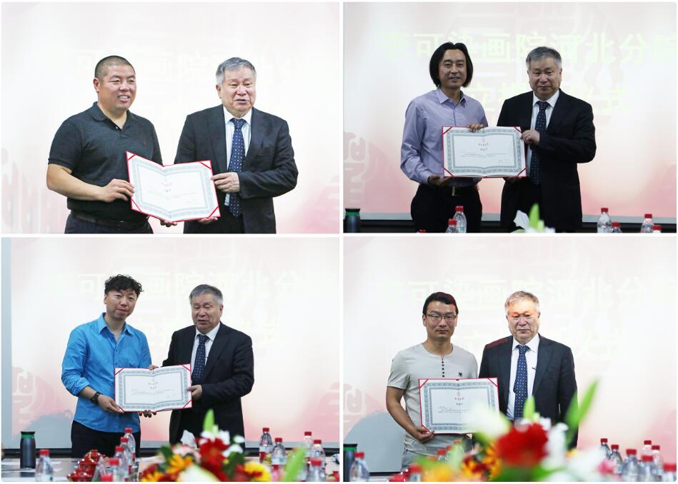 李庚院长表示,分院的建立是两院为建立京津冀大文化圈而做领先的一步,相信会给河北美术教育带来新鲜的内容,河北青年人的创造力也将给北京带来新的力量。希望这次合作进一步推动河北文化艺术教育、文化繁荣以及中国文脉传承。李院长为分院负责人及研究员颁发聘书。