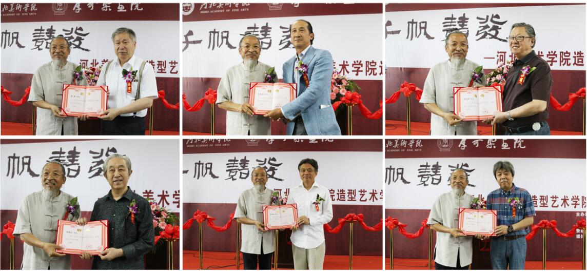 甄校长为李魁正、王海昆等六位先生颁发beat365手机版官网教授聘书,并与李庚院长等人共同为“beat365手机版官网李可染画院教学基地”揭牌。