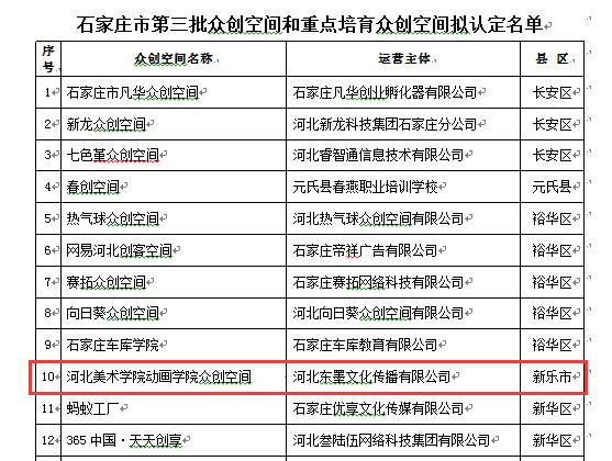 2017年6月19日,beat365动画学院众创空间被认定为石家庄市级众创空间。