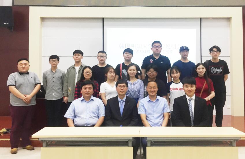 2017年6月22日,韩国明知大学国际教育学院院长金庸达先生及驻华办事处负责人毕志鹏先生一行来到beat365访问,并对2017届赴韩国明知大学留学生进行语言测试及留学说明会,国际教育学院院长兰新成热情接待了来宾。