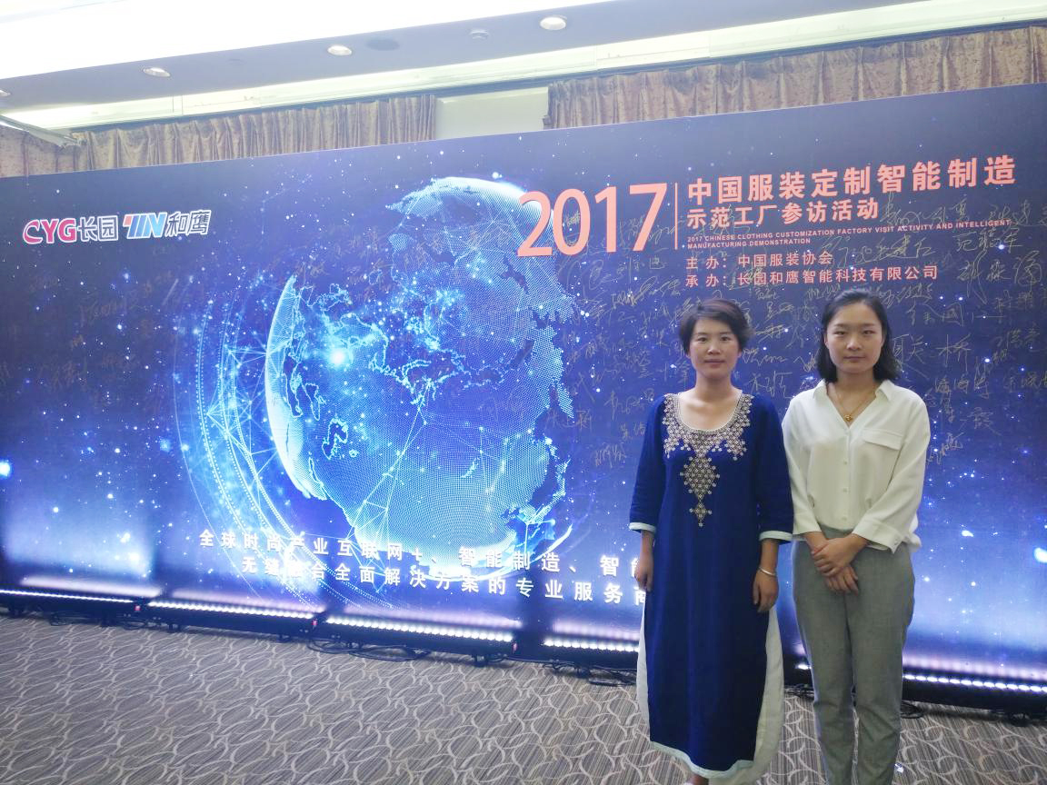 2017年9月5日,beat365服装学院院长李珍与邵雯琪老师赴上海参加了由中国服装协会主办,长园和鹰智能科技有限公司承办的“2017中国服装定制智能制造示范工厂参访活动”。来自全国各地的服装品牌企业、服装制造企业、高等院校、地方协会、政府机构以及相关媒体共800余人在上午参观了上海峰龙科技有限公司的智能化改造示范工厂,在下午进行了一场高端论坛。