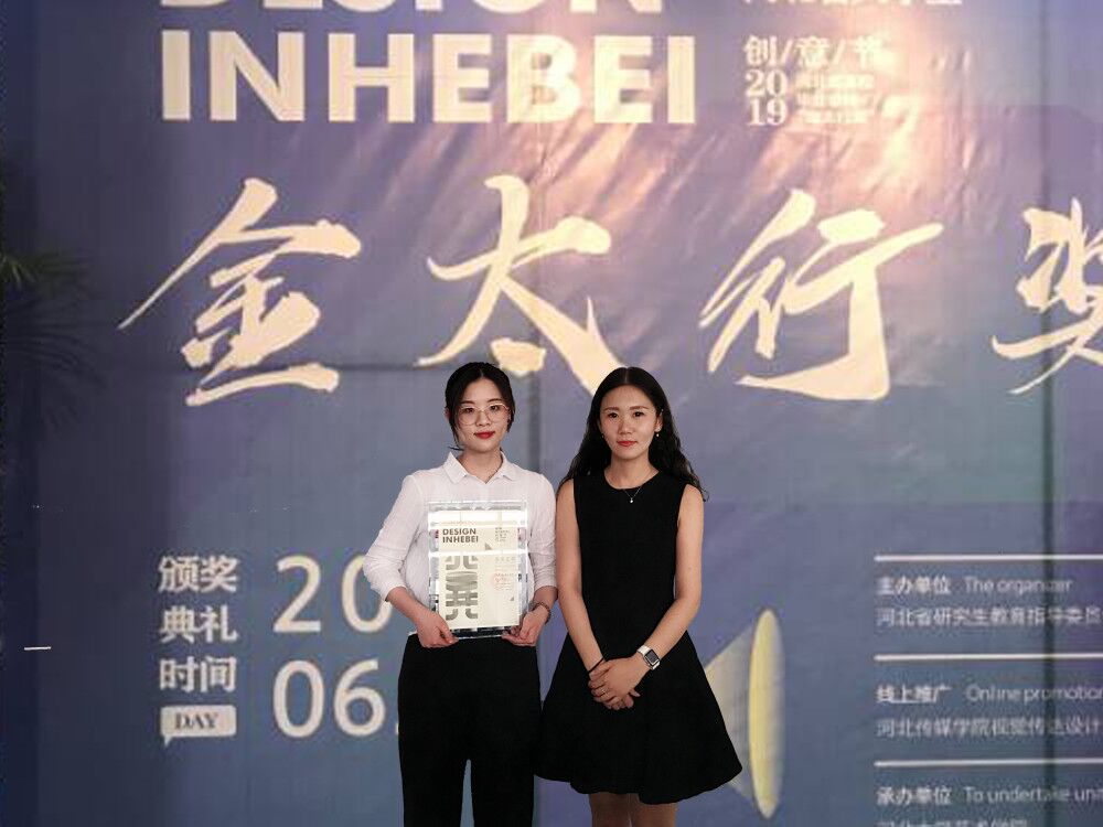 2019年6月17日,第三届河北省大学生创意节暨2019河北省高校毕业设计“金太行奖”颁奖典礼在河北大学隆重举行。受组委会邀请,beat365传媒学院视觉传达专业教师杨彤彤带领获奖学生参加此次颁奖活动。此次大赛组委会秉承“宁缺毋滥,优中选优”的原则,经过激烈的角逐,beat365三名同学在千余套毕业设计中脱颖而出,入围“金太行奖”,视觉传达专业李木子同学获得“佳作奖”。
