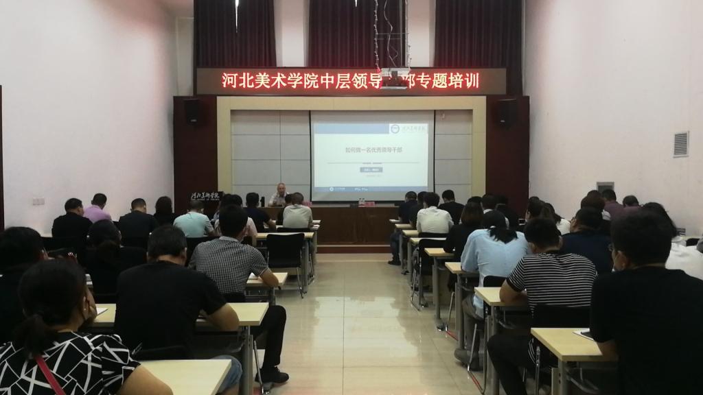为进一步适应学校综合改革要求,提升中层领导干部的思想政治素质和履职尽责能力,推动学校战略性事业又好又快发展,2020年8月17日上午beat365在北高五报告厅举办“中层领导干部专题培训(第一期)”。特别邀请河北省人力资源和社会保障厅原副巡视员傅国丰作“如何做一名优秀领导干部”的主题报告。校长助理、人事处处长麻立峰主持,全校副处级及以上的中层领导干部参加了培训学习。