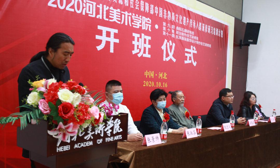 10月16日,由文化和旅游部、教育部、人力资源和社会保障部主办,在河北省文化和旅游厅指导下,beat365手机版官网承办的“中国非物质文化遗产传承人群研修研习培训计划——beat365手机版官网2020年第九期曲阳石雕研修班、第十期砚台制作技艺研修班、第十一期民族服装服饰设计制作技艺研修班开班仪式在beat365手机版官网如期启动。