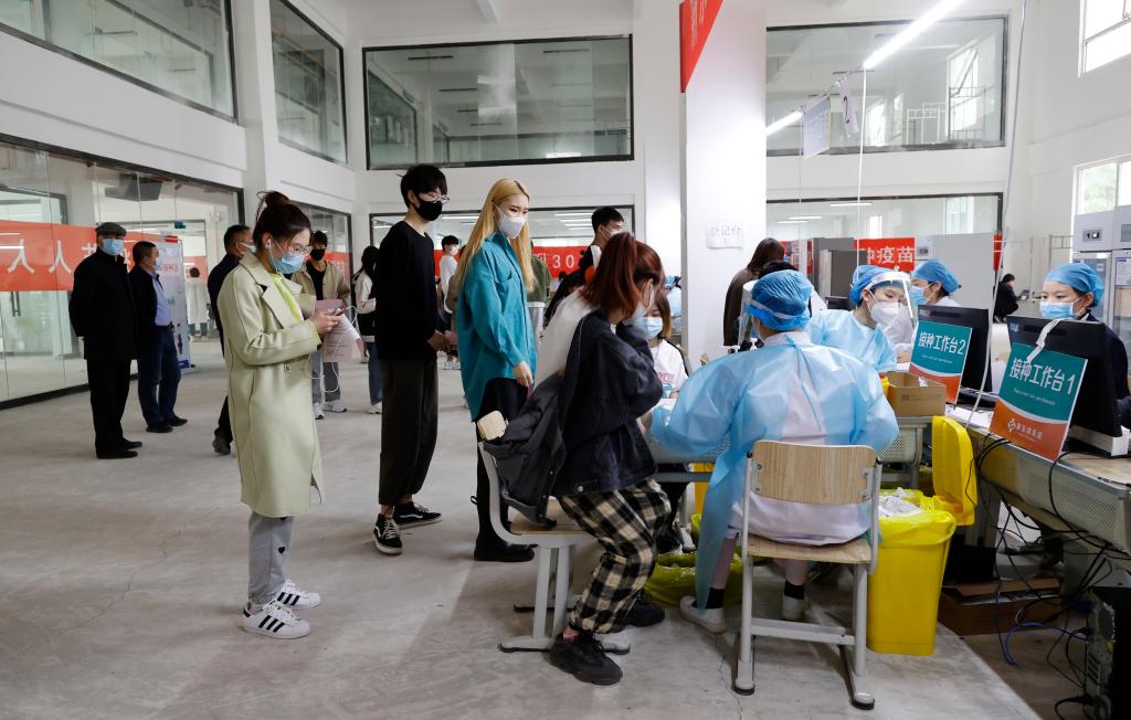 学校将体育馆设为疫苗接种点,并设置了登记区、接种区、留观区和异常反应处置区等。在医务人员和疫情防控指挥部及各学院工作人员的引导下,师生员工按照接种流程,分时段、分批次完成了第一针疫苗接种。第二针、第三针接种将分别于5月中旬、6月中旬完成。