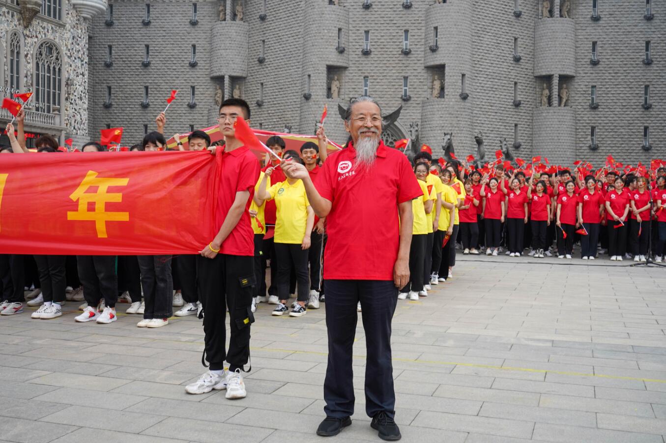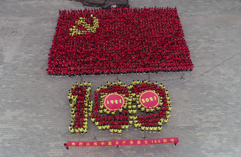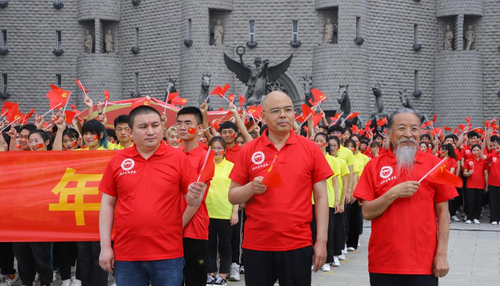 beat365手机版官网校长甄忠义,省教育厅督导专员、校党委书记高国忠,校长助理麻立峰身着统一服装与1700余名学生共同组成“党旗”和“100周年”的图形,并激情昂扬地演唱了《没有共产党就没有新中国》,歌声表达了师生爱党爱国的赤子之心,奉献青春的报国之志。