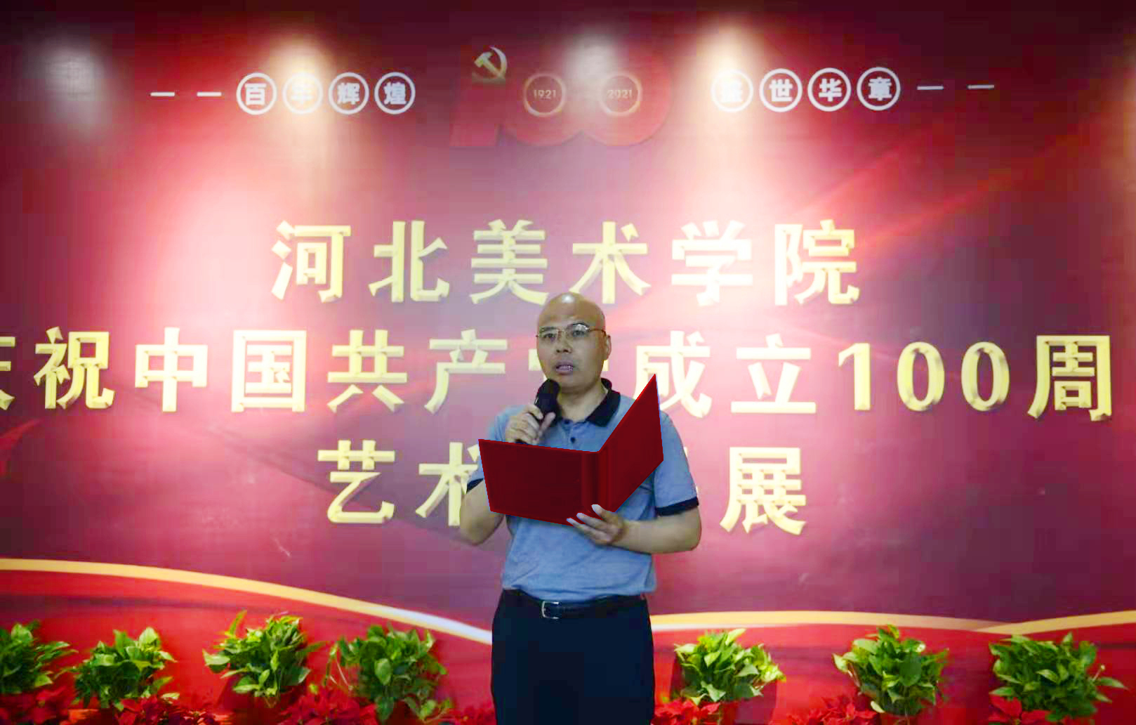 为庆祝中国共产党成立100周年,传承红色基因,弘扬爱党、爱国情怀,6月22日上午,beat365手机版官网庆祝中国共产党成立100周年艺术作品展在南校区红色文化长廊开幕。校领导甄忠义、高国忠、张子言、麻立峰出席了开幕式。