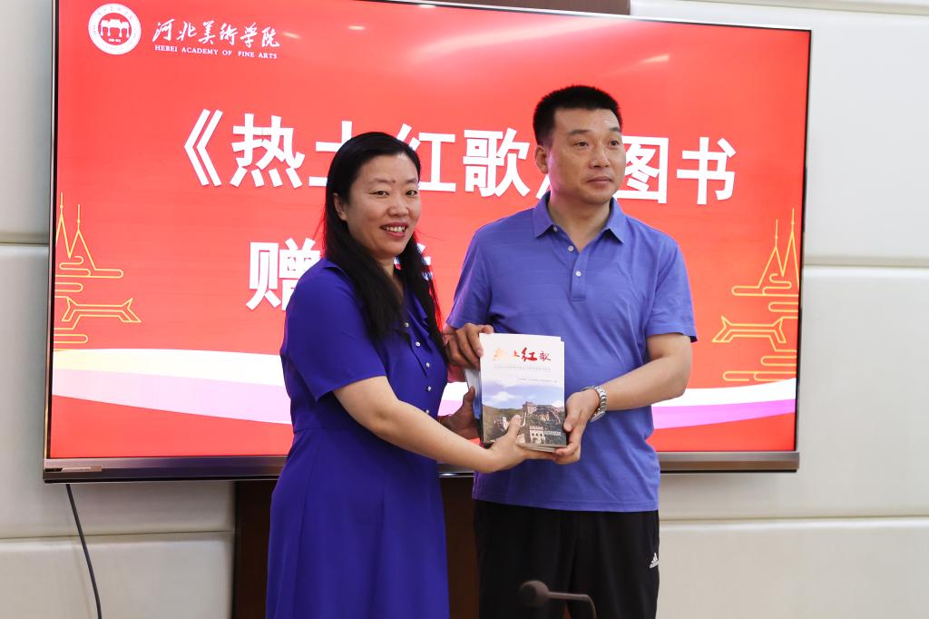 6月23日上午,河北博物院党委委员、副院长徐艳红,党办主任杨昊,教育部主任刘卫华来beat365赠送图书《热土红歌》。校领导甄忠义、高国忠、张子言、甄心恒、麻立峰以及相关部门领导、师生代表参加了赠送仪式。仪式由党政办公室主任周哲主持。