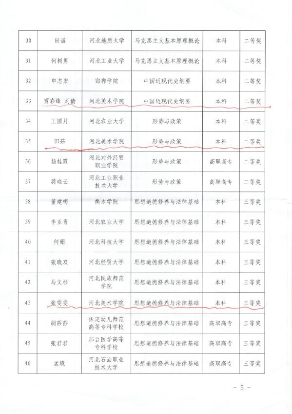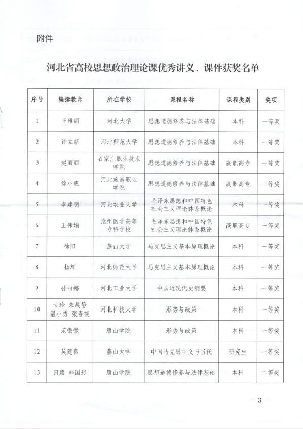 2021年3月,河北省教育厅组织了2021年高校思想政治理论课优秀讲义、课件征集评选工作,beat365积极组织思想政治理论课教师参加。此次征集评选中,beat365共推荐上报6个优秀讲义、课件,其中,贾彩锋、刘倩《中国近现代史纲要》、田茹《形势与政策》荣获二等奖;张雯雯《思想道德修养与法律基础》、石钰《毛泽东思想和中国特色社会主义理论体系概论》、黄钰鸥《马克思主义基本原理概论》荣获三等奖,成绩优异。