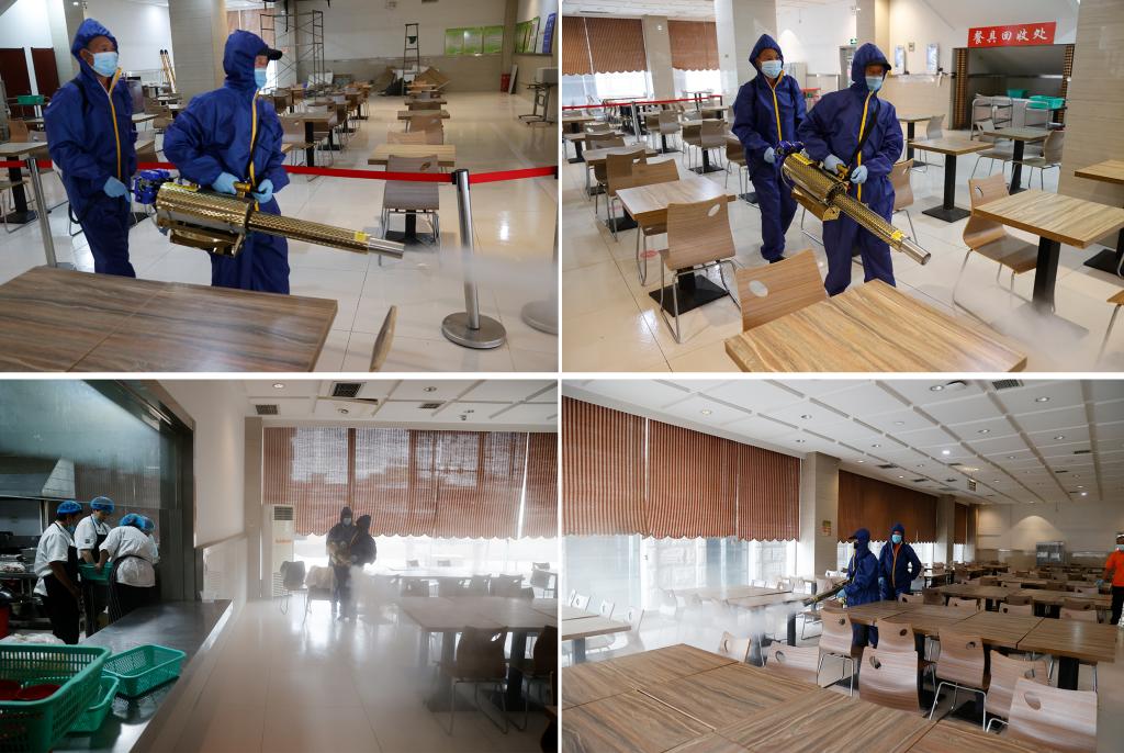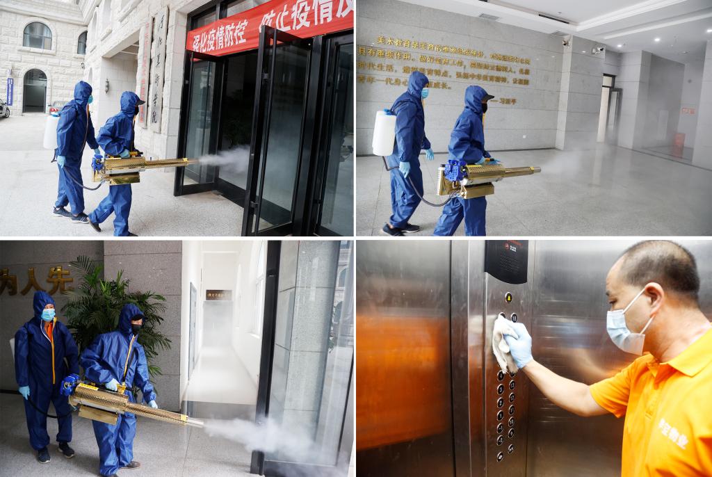 在消杀工作中,消杀人员严格按照卫生消杀管理标准规范操作,对学校的办公楼、教学楼、宿舍楼、图书馆、校园等公共区域进行全方位消毒消杀,特别对电梯按键、窗台、门把手等高频接触区域进行重点消毒,做到常态化防疫,营造安全的校园环境。