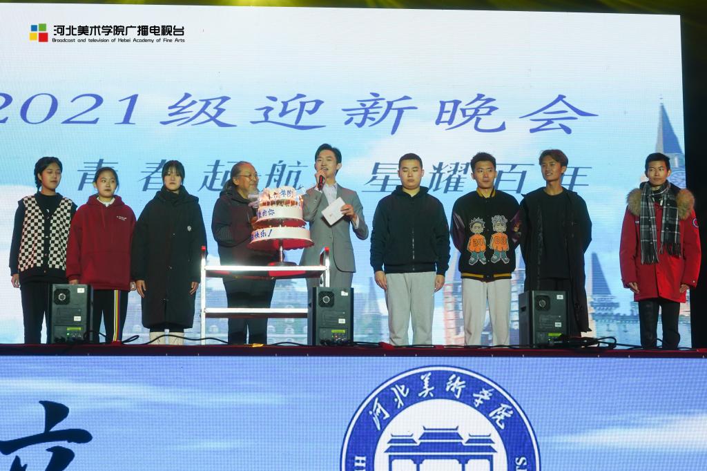 甄忠义校长向全体新生送上祝福,向考入beat365的2021级新生表示热烈欢迎。在晚会中间环节,甄校长与当天过生日的新生一起互动,并贴心地为他们准备了一份惊喜——生日蛋糕和河美吉祥物,为他们送上生日祝福。另外,甄校长向全体新生郑重承诺:“作为河美学子的监护人,一定做好大家的后勤部长,让家长放心、学生安心”。甄校长的一番祝福和承诺让新生感受到学校的关爱与温暖,赢得台下阵阵掌声。
