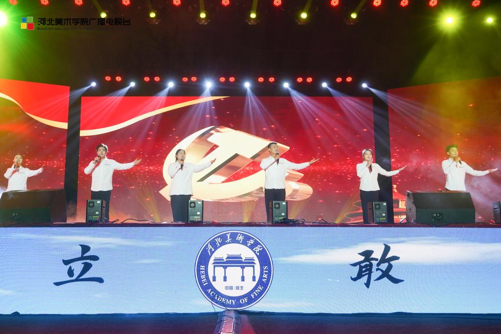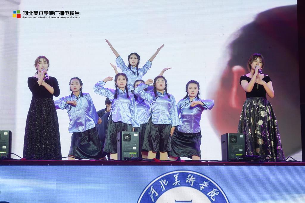 激情的歌伴舞《淋雨一直走》、《万疆》、流行歌曲串烧《热血高校》等节目展现了青春与梦想的光芒,自编自导自演的相声《美院赞》生动彰显了河美学子对学校无比的热爱之情,诗朗诵《颂党礼赞》、歌伴舞《我仰望你看过的天空》等节目向祖国表达了深切的祝福,走秀节目《Chinese nation》展现了不同民族的时代风采,乐器联奏的《盛世国乐》传播着激昂悠扬的音符,古典舞《唐宫夜宴》展示了大唐的神韵风采……演员们精彩的演出激起在座同学们的阵阵掌声,将现场气氛一次次推向高潮。