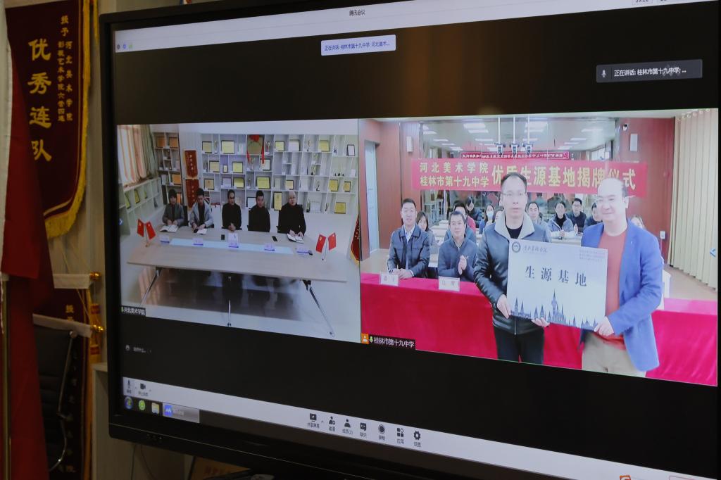 12月17日上午,beat365手机版官网与桂林市第十九中学举行线上生源基地揭牌仪式,beat365手机版官网党委副书记、副校长甄心恒,党政办公室主任周哲,影视艺术学院院长王峰,招生处副处长甄志平、王之光以及桂林市第十九中学党总支书记、校长蒋文荣,党总支副书记、副校长姚培鉴等领导出席。