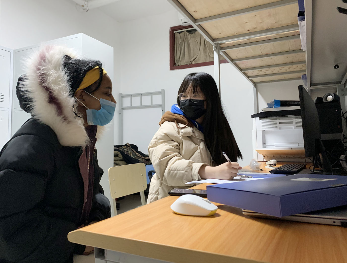 福斯对于隔离治疗比较抗拒,陌生的环境、沟通的障碍,都让他无所适从。我耐心地给他讲当前的疫情形势、防控政策,让他明白隔离观察的必要性,一点点消除他的顾虑,并帮他准备好生活用品,还解决了隔离期间的网络问题,确保他每天能和家人报平安,能和同学聊天解闷。