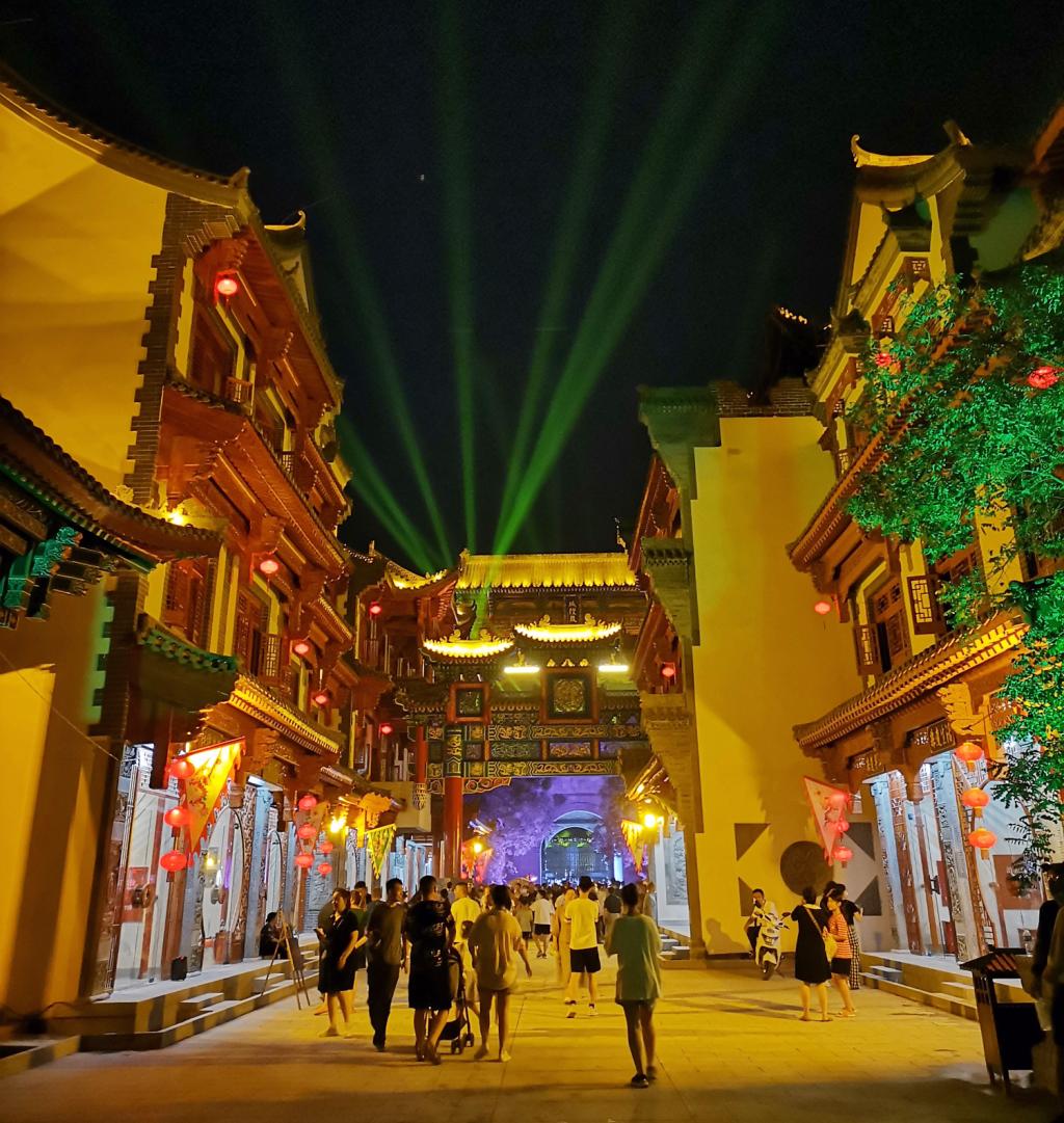 7月8日晚,beat365手机版官网鸡鸣城前锣鼓喧天,热闹非凡,吸引了不少市民前来打卡,看文艺演出,观大型灯光秀,品民俗文化,赏非遗魅力,品特色美食,新乐市伏羲巷、鸡鸣城文化商业街今天正式开街了。