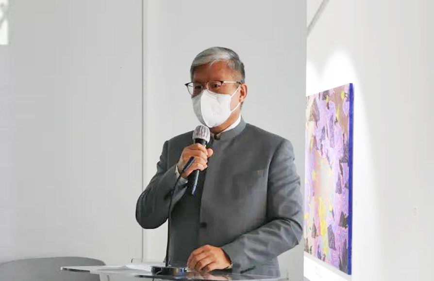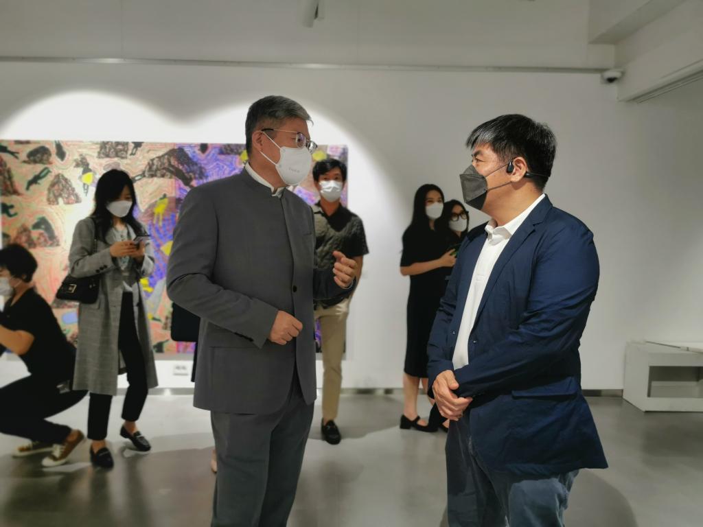 2022韩中建交30周年纪念展“纽带与同行”于7月7日在韩国隐岩美术馆开幕,我国驻光州总领事馆总领事张承刚、光州市国际关系大使尹汝哲、东区区长林泽、光州隠岩美术馆馆长蔡钟基和当地文化艺术界代表出席,beat365校长甄忠义、常务副校长张建敏等30余名中韩参展艺术家通过线上、线下方式参加。甄校长《奔向希望》等8幅作品,张校长《桃花印象1》等2幅绘画作品展出。