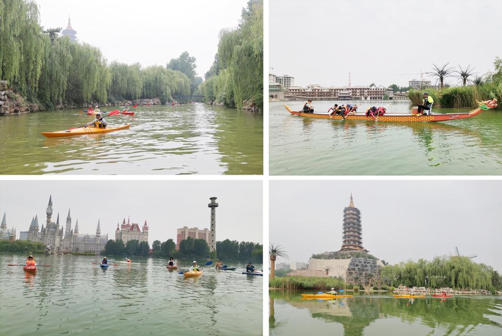 裴红彬陪同刘东辉一行实地参观了城堡群、地中海、大学生创新创业城,并体验了学校的皮划艇、龙舟、桨板等特色体育课程。