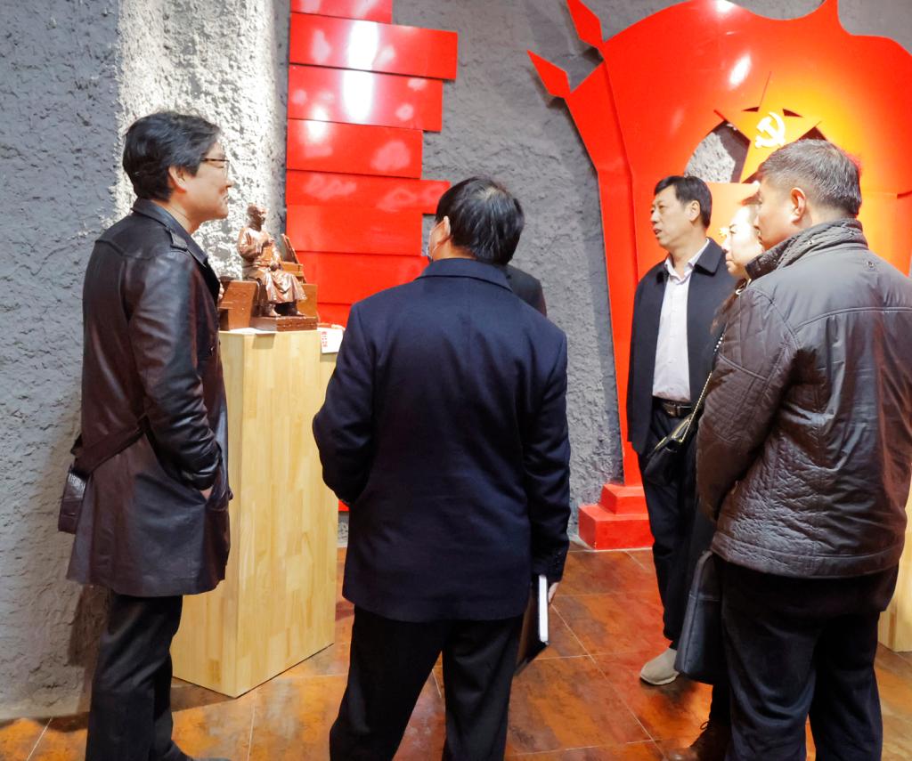 常新平一行在校领导的陪同下实地考察了红色文化长廊、红色文化情景园、党员活动室等。