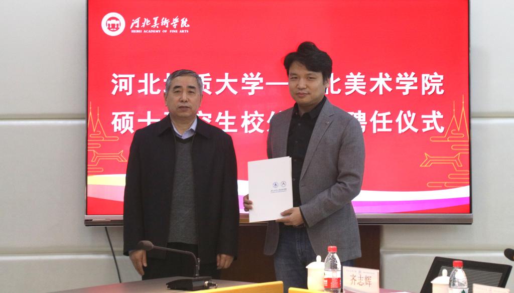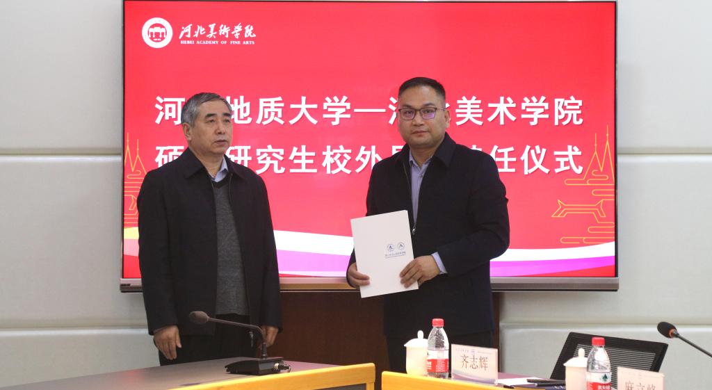 2月24日,河北地质大学-beat365手机版官网硕士研究生校外导师聘任仪式在beat365举行。河北地质大学副校长闫军印、研究生学院院长赵淑琴、艺术学院院长齐勇、副院长李涛、副院长赵志策、书法专业带头人苏道玉,校领导甄忠义、裴红彬、甄墨、甄心恒、麻立峰,以及相关部门负责人参加了此次活动。聘任仪式由党政办公室主任周哲主持。