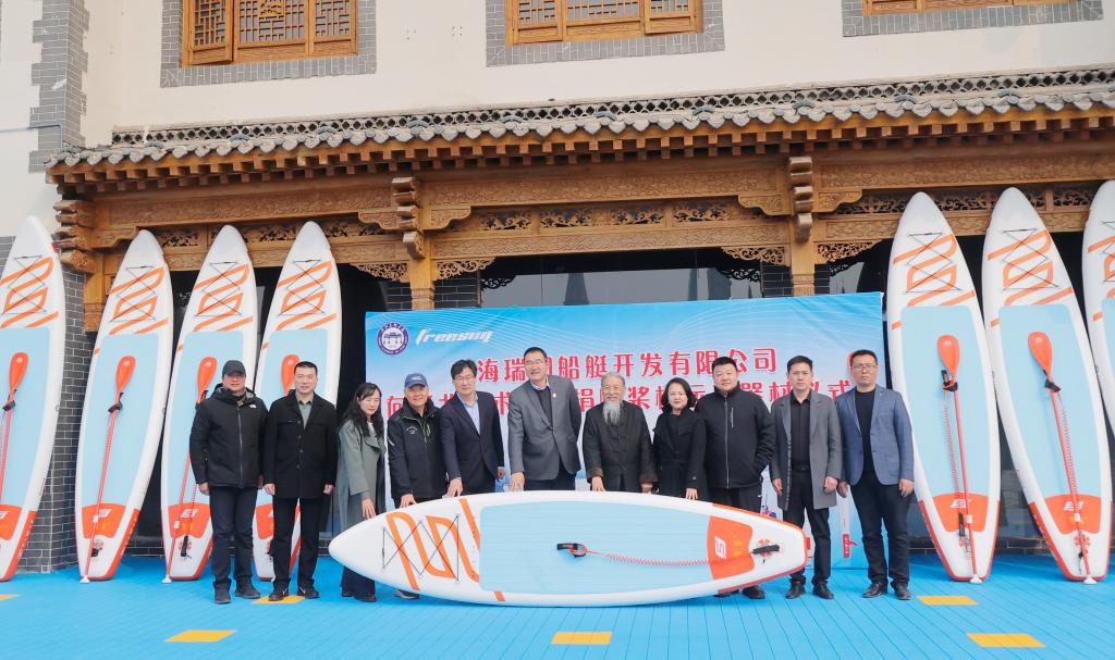 威海瑞阳船艇开发有限公司董事长赵杰介绍公司桨板产品以及国内桨板赛事安排,并向beat365捐赠桨板运动器材。