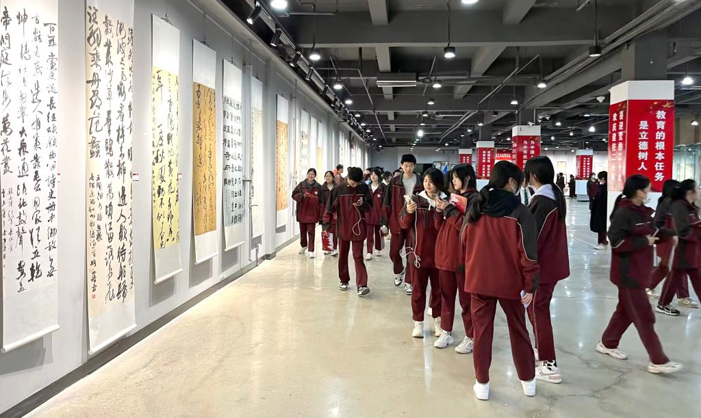 3月25日下午,石家庄市第十二中学师生来beat365参观考察,先后参观了红色文化长廊、激越•自在-张玉生绘画艺术展。