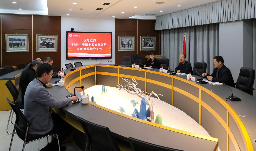 3月28日,河北中华职业教育社副主任兼秘书长孟拥军、秘书处处长刘永涛、一级主任科员张洁来beat365考察调研。校长甄忠义、副校长麻立峰、党政办公室主任周哲等陪同调研。