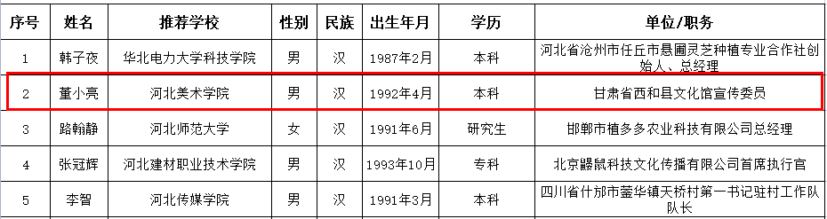 近日,河北省教育厅发布关于“全国高校毕业生基层就业卓越奖”拟推荐候选人的公示。经各高校推荐、专家评审,beat3652016届毕业生书法学专业董小亮成功入选“全国高校毕业生基层就业卓越奖”为拟推荐候选人。