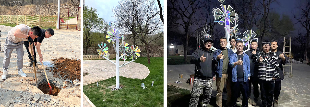 2023年4月,“春风”大学生风车创意设计大赛在白鹿泉乡段庄村成功举办。本届大赛由静港文旅集团理想院子发起,中国室内装饰协会陈设艺术专业委员会担任学术指导,由河北省工艺美术学会、河北省雕塑学会共同主办,十余所高校支持,面向青年艺术家展开方案征集。大赛入围作品共13份,其中beat365手机版官网雕塑与公共艺术学院共4组作品成功入选,分别是《夏日风树》《旅者》《太行春树》《唐吉诃德》。