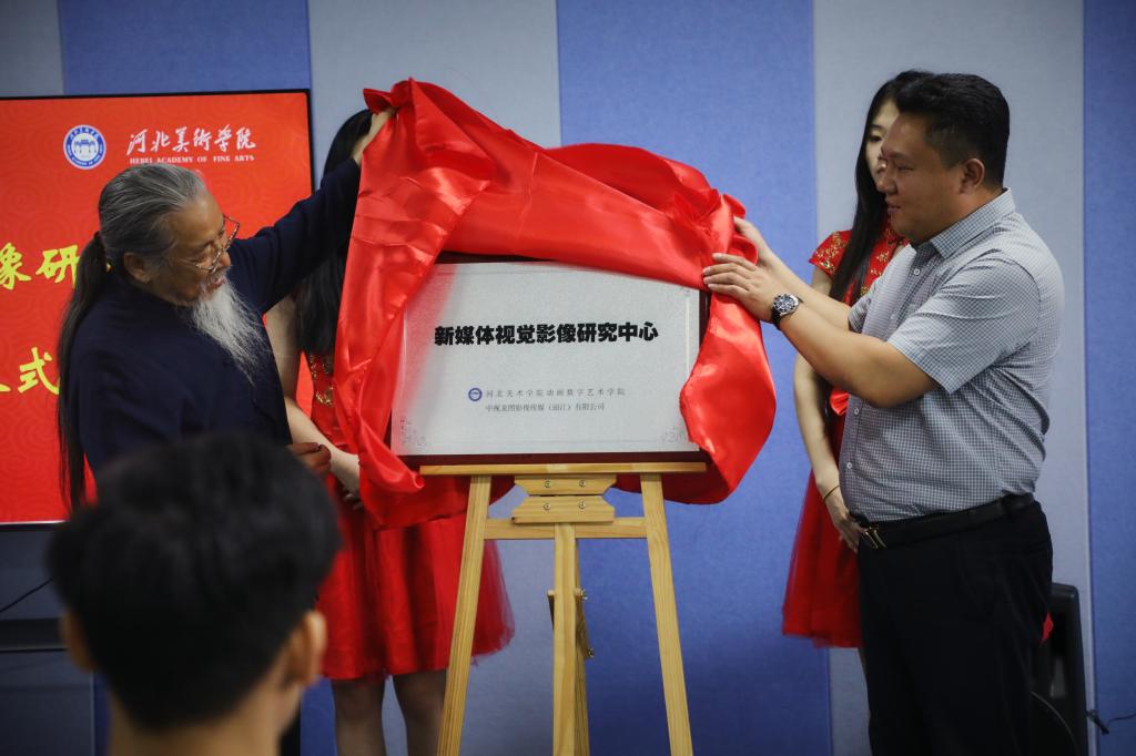 甄忠义校长、中视龙图影视传媒有限公司路总共同为“新媒体视觉影像研究中心”揭牌